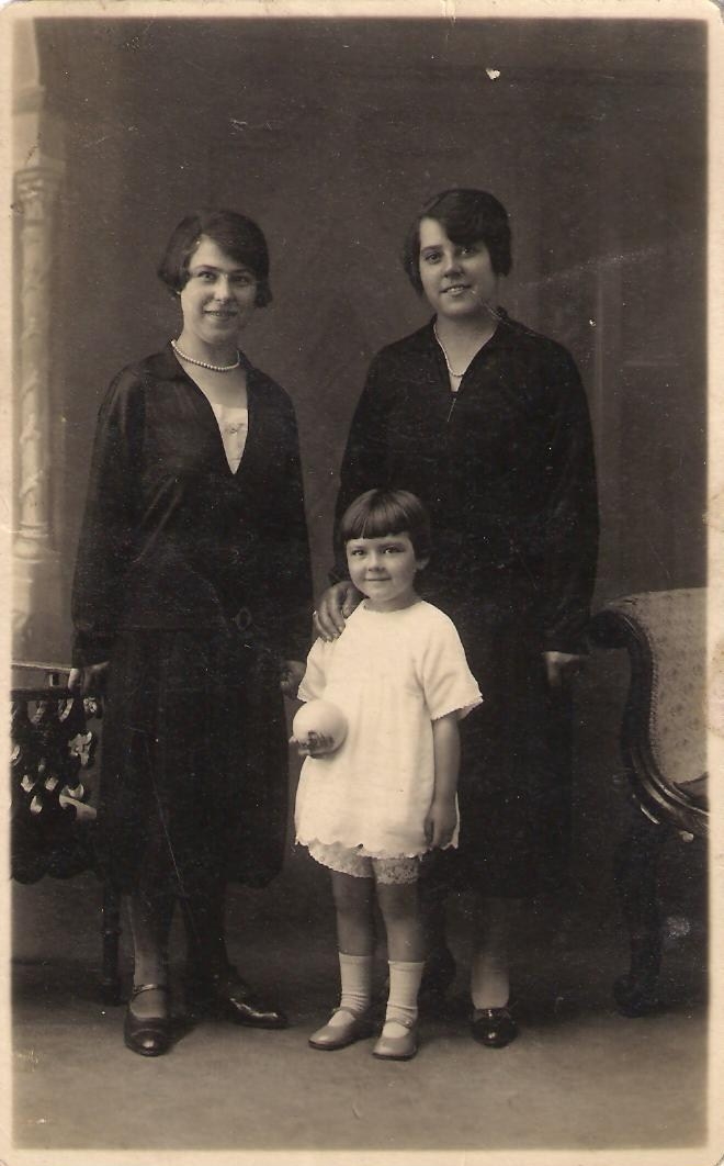 Mabel is on the left with her daughter in the middle. The woman on the right is Mabel’s older sister, Ada. The child Mabel is younger in this photo (about four years old) which means that it was taken about 1929. If you can help with any more information about Mabel, her daughter and the mystery third person in any way I would love to hear from you.