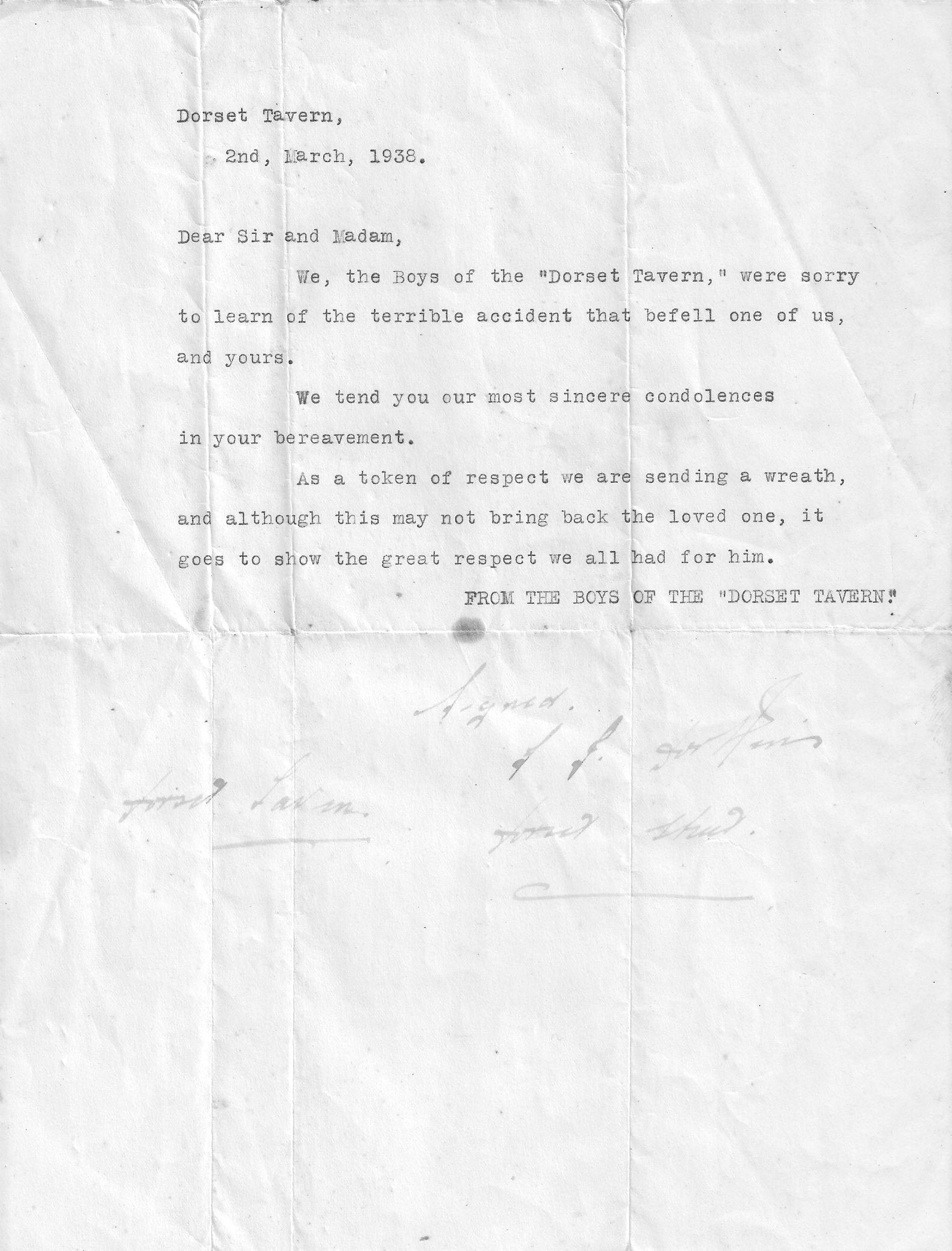 Below is a letter of condolence that Clara received in the post after John’s death.